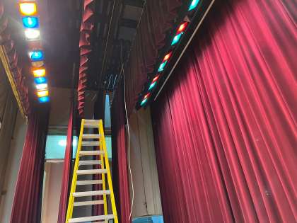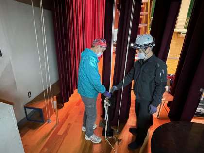 本日はスクリーンと幕の取り替え作業のほか、新しいスクリーンはウインチで操作するため、取り付け作業を行いました。