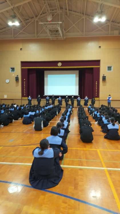 生徒のみなさんは、学級代表や先生方の話を、しっかり聞いています。