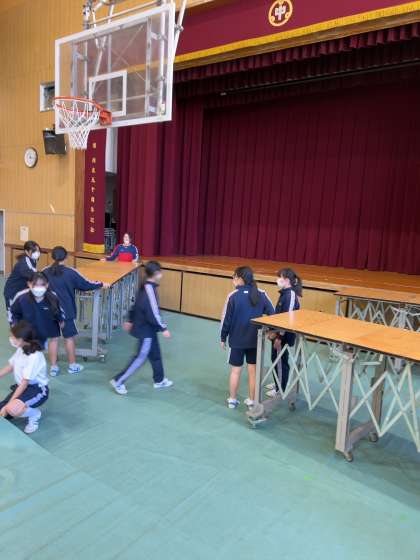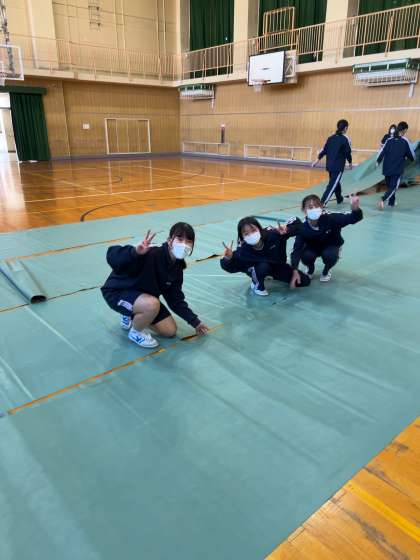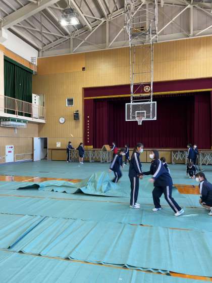 2年1、2組の生徒たちが本日行われる記念式典の会場設営を手伝ってくれています。