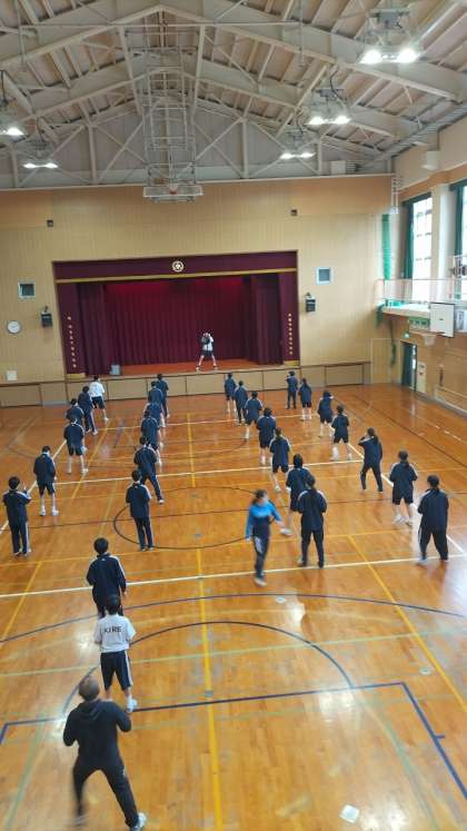 本日も、Box Fitを援用した身体活動を、体育の授業を行いました。