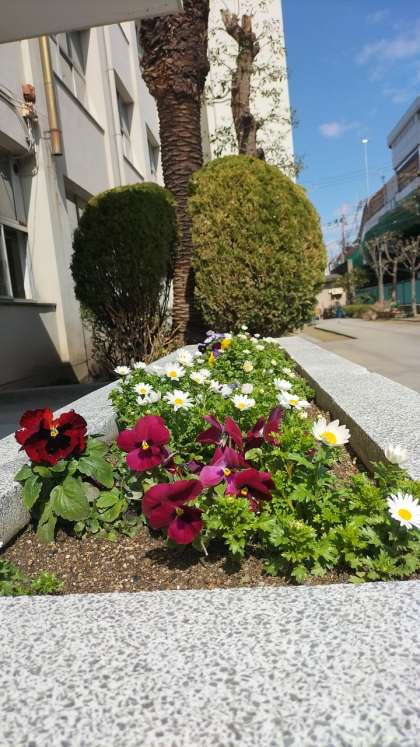 暖かい日があり、花壇の花もきれいに咲いています。