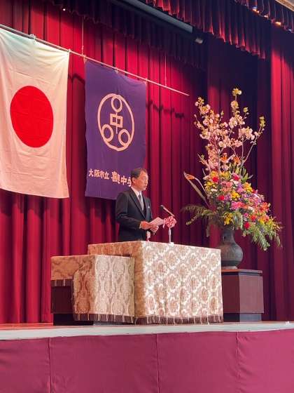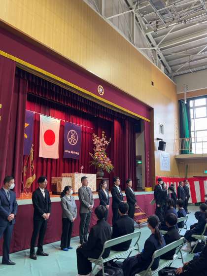 喜連中学校に入学されたみなさんが、少し緊張した表情を見せながらも、しっかりと式典に臨んでいました。また、今年度新しく赴任された第16代校長、水野光章先生から祝辞が述べられました。これから喜連中学校でさまざまな体験を通して大きく成長して行くことを期待しています。