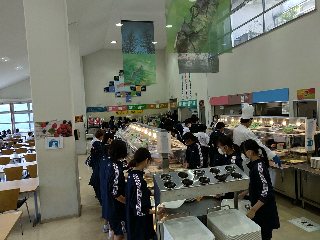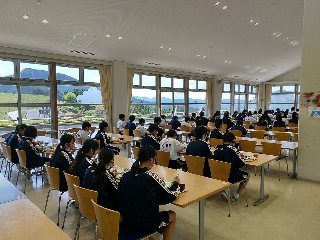 みんな同じ方向をむいての食事です。