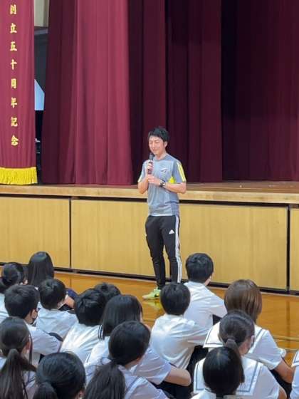 本日より育児休暇から復職された先生と、2年生の体育科の授業を担当する教員、その補充にあたる教員の紹介が行われました。