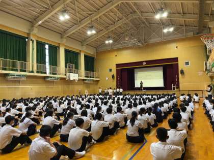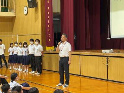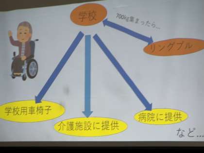 生徒会からペットボトルキャップ・プルタブ回収についての取り組みが紹介されました。