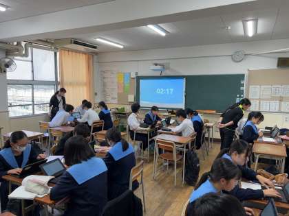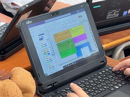 和歌の単元をTeamsを使ったグループ学習で発表し合いながら、意見交換を端末でやり取りしていました。