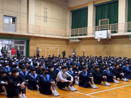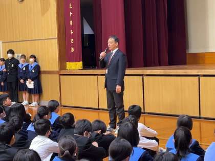 全校集会が行われて、校長先生からお話がありました。今週に入りすっかり寒くなってきました。