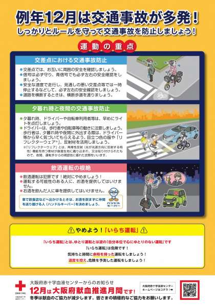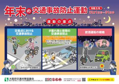 本運動は、年末にかけて交通事故が多発する傾向にあることから、広く府民に交通安全思想の普及・浸透を図り、交通ルールの遵守と正しい交通マナーの実践を習慣付けることによって、交通事故防止の徹底を図ることを目的としております。