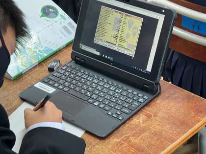 地球温暖化について学習し、家庭でできる二酸化炭素排出削減について調べ学習を行っていました。