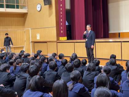 生活指導の先生から冬休みの過ごし方についてお話がありました。不審者情報などが増えているため、登下校に気をつけてください。また、地域や周りの人に迷惑をかけることのないよう過ごしましょう。