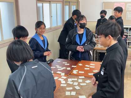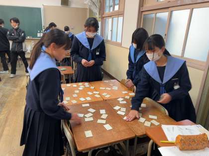 1年生百人一首大会へ練習中