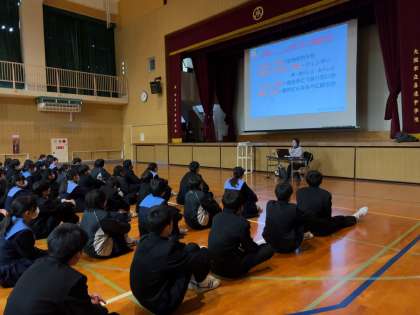 5時間目に体育館で2年生の性教育が行われました。性の価値観について講師をお招きしてご講話していただきました。