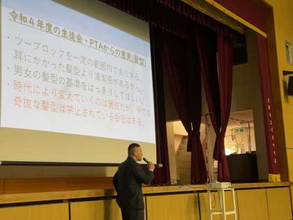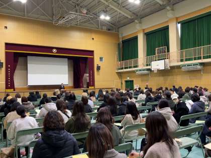令和6年度の新入生保護者説明会が体育館で行われました。本校の教育課程や生活指導規定、給食アレルギーについてなどの他、事務室とミマモルメ利用についての連絡もありました。新入生の入学式は令和6年4月3日(水)に行われます。