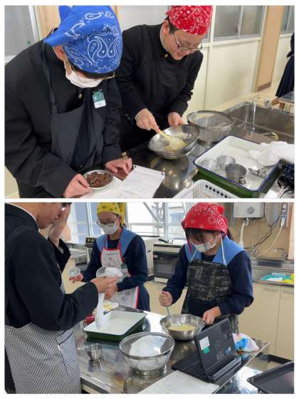 本日1.2年生はテストですが、3年生では授業が行われています。2回目の調理実習でカップケーキを作りました。