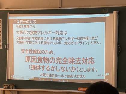 令和6年度から給食のアレルギー対応に変更があるため、すでに給食委員会で行われた研修に引き続き、教職員全員で研修を実施しました。
