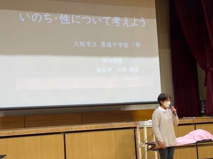 5.6時間目、1年生の性教育の授業が行われました。講師に浜田病院から助産師の先生をお招きし、いのちの教育がテーマで、生や性について正しい知識を身につけるため講演を実施しました。浜田病院は中学校からも近いため、生徒たちにも浜田病院で産まれたという生徒さんもたくさんいました。保護者の方も数名参加されて、一緒に学びを深めることができました。
