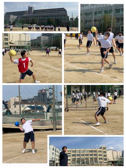 クラス対抗のドッジボールで対戦して、クラスで力を合わせて競い合いました。天候も青空のもとで、楽しく競技できました。