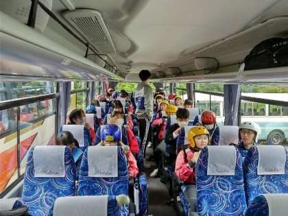 着替えを済ませて、ラフティングのスタート地点までバスで移動します。