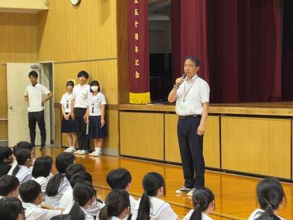 校長先生から、自由の意味についてお話しされました。自由を維持するために、社会ではみんなが守るべきルールを守って行動します。守れない人が多くなって、トラブルが増えると法律で規制されていきます。そうすると逆に自由は少なくなっているのです。学校でも守るべきルールを守らない人が多くなると同じことが起こっていきます。
