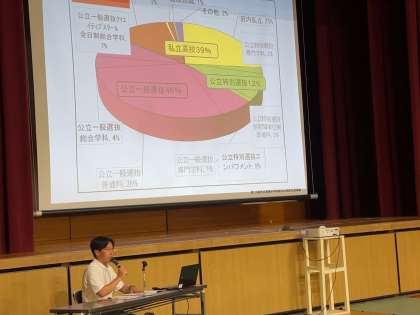 3年生の保護者の皆さまがたくさん会場に足を運んでおられました。3年生は初めての進路を前に不安を抱えていると思いますが、ご家庭で一緒になって考えていただきたいと思います。
