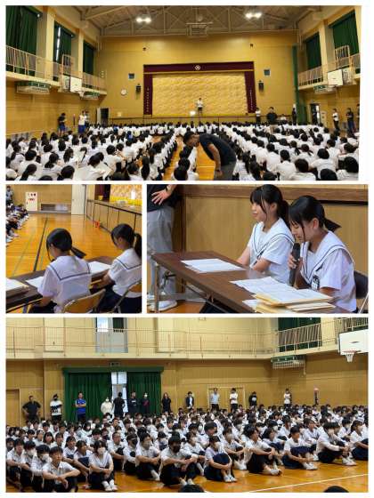 6時間目に体育館で後期生徒会選挙の立会演説会が行われました。今回の選挙は信任投票となります。