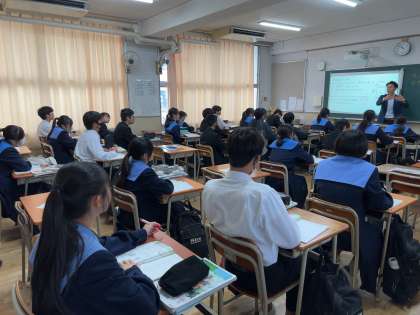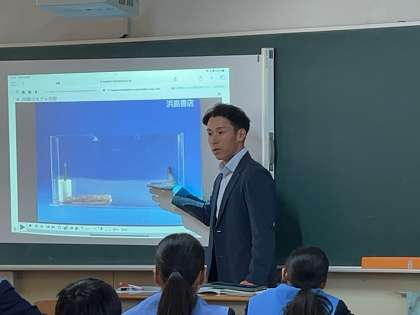 2年1組で理科の研究授業が行われ、「気団と前線」について学習しました。