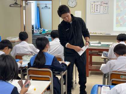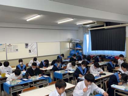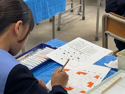1年2組で美術の研究授業が行われ、ユニットパターンについて学習しました。