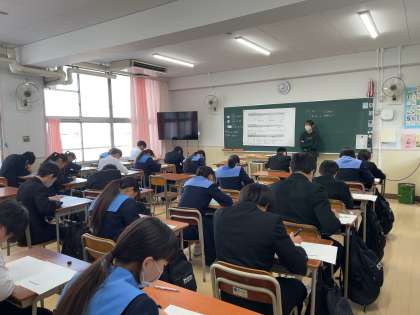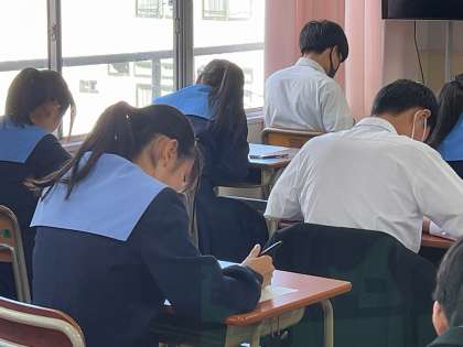 期末テストの1日目、英語・数学・音楽(1年)・美術(2年)・技家(3年)が行われました。