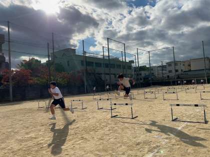 3年5組の体育の授業でハードルが行われていました。みんな全力疾走でトライしていました。