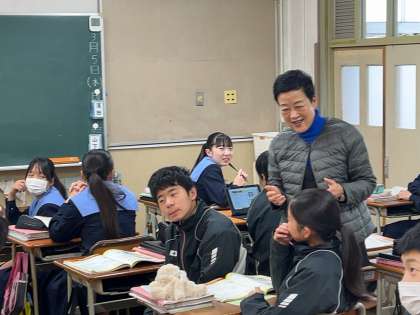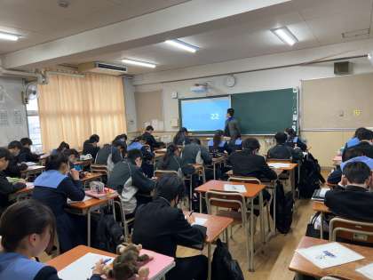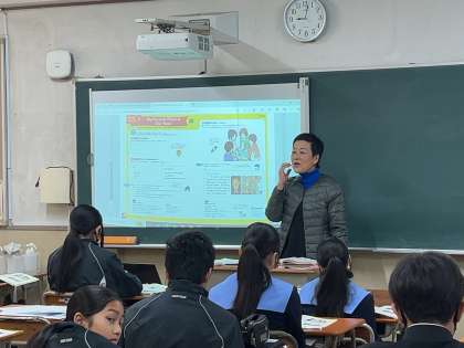 ?2年1組で英語の研究授業が行われました。グループで英語の伝え合いをし、スピーキングの向上に取り組みました。