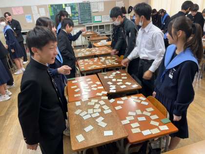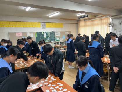 ?2年生で百人一首大会に向けた取り組みが行われました。2/17(月)の大会に向け、生徒たちも練習に気合の入っていました。