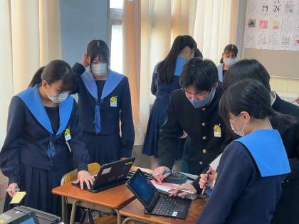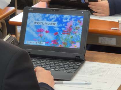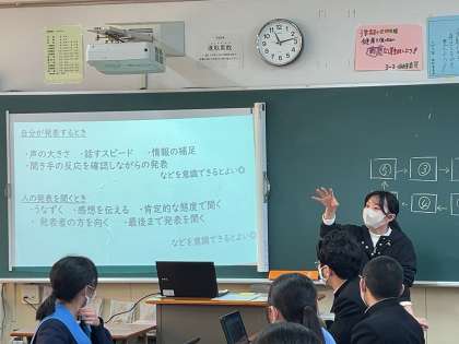 3年3組で国語の研究授業が行われました。今年出会ったことばで印象に残っているものを班ごとで話し合って共有していました。