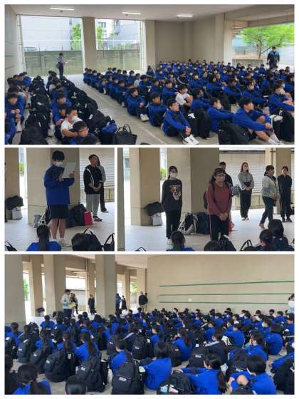 まず、出発式が行われて、その後バスに乗って出発しました。