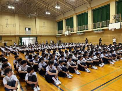 全校集会にて校長先生からルールとマナーについてお話がありました。ルールには罰則はありますが、マナーにはペナルティはありません。マナーを守れていないとルールも守れなくなっていきます。マナーとは社会で共に生活していく上で、相手の気持ちになって考えたときに、相手に迷惑をかけないようにしょうという気持ちから生まれるものです。みんなでマナーを守れる集団として学校生活を過ごしていきましょう。