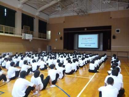 7月4日(月)1限目、体育館において、3年生はHIV感染や男女交際等について、養護教諭よりパワーポイント等を活用しての性教育を実施しました。