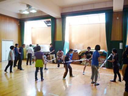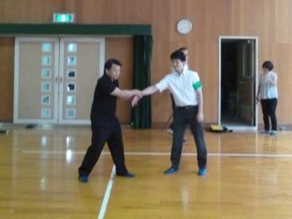 平野警察より4名の講師をお招きし、不審者侵入などの緊急時対応について、護身術やさすまた等の使用方法について講習を受けました。