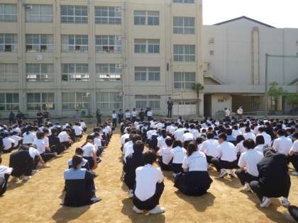 連休明けの5月8日(月)全校集会を行いました。校長より、喜連中学では今日を「いじめについて考える日」と設定しますと話がありました。