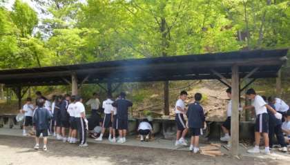 一泊移住の2日目の午前は、野外炊飯でカレー作りを行いました。各班7〜8人が協力して、それぞれが役割を分担して、美味しいカレーつくりを目標に頑張りました。最後は手作りのカレーライスを食べて、片付けして終わりました。