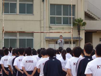 5月15日(月)全校集会を行いました。校長より、先週金曜日の各学年の取り組み「3年:校外学習」「2年:球技大会」「1年:一泊移住」についてふれられ、特に3年生の神戸での活動について「班行動もしっかりできていて、マナーもとても良かった。」と話をされました。各学年ともに仲間づくりを通して、いろんなものを学んだと思います。