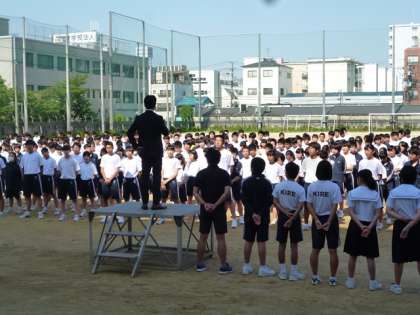 5月22日(月)全校集会を行いました。校長より、先週行われた中間テストについて振り返りがあり「今の努力は、将来につながる」と話をされました。その後、体育大会についての話、熱中症に気をつけましょうとありました。集会の最後には、生徒会長より体育大会のテーマ「みんながみんな英雄」を発表しました。
