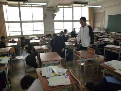 11月11日(土)土曜授業を実施しました。全学年1限目は教科の公開授業、2限目は地震と津波を想定した避難訓練です。10時に警報が鳴り、地震の揺れがおさまった後、校内放送で3階以上に避難しました。平野消防署から来校していただいた署員の方より、校内放送で講評していただきました。最後は校長よりの講評で避難訓練は終わりました。
