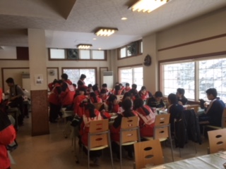 午前中の講習が終了し、各講習会班ごとにレストランでカレーライスの昼食です。