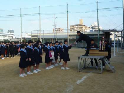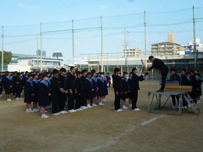 校長講話では、健康管理の話題から、3年生の入試にふれられ、「一週間頑張ってください。」と話をしました。また、生徒指導主事より、完全冬服の話から、「服装をきちんとすることが大切」と説明しました。10・11月の風紀目標も「服装の不備をなくそう!」です。