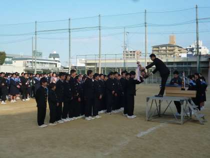 11月5日(月)全校集会を行いました。ブロック大会3位(バレーボール部)、ブロック大会優勝(野球部)、全国大会で優秀賞とバンドジャーナル賞(吹奏楽部)が表彰されました。