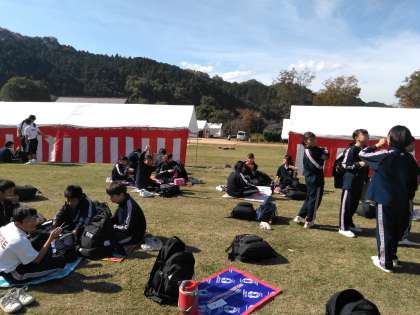 お昼ごはんは、石舞台古墳前です。全班着々と到着しています。