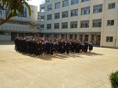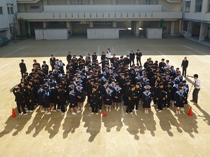 12月4日(火)3年生は、アルバム用写真と進路用写真の撮影を行いました。個人写真の撮影の後、4限目始まってすぐに、学年全体でテニスコートに集合して、校舎上階から全体写真の撮影がありました。来週は授業風景等のアルバム用写真撮影が行われます。