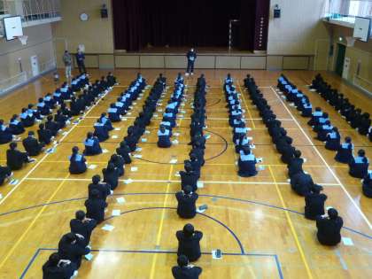 1月18日(金)6限、体育館において、2年生は修学旅行の取り組みを行いました。担当の先生から、「修学旅行のしおり」を使って説明を聞きました。修学旅行は2月6日(水)〜8日(金)の2泊3日で、長野県の白樺高原国際スキー場に行きます。