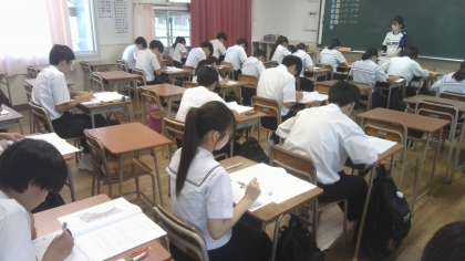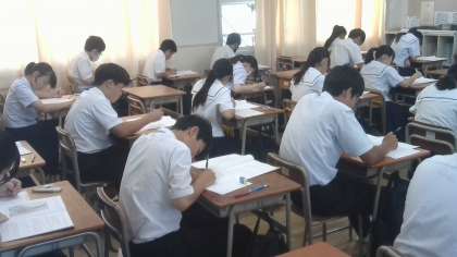 本日、中学生チャレンジテスト(3年)と1,2年課題テストが行われました。生徒たちは集中して取り組んでいました。
