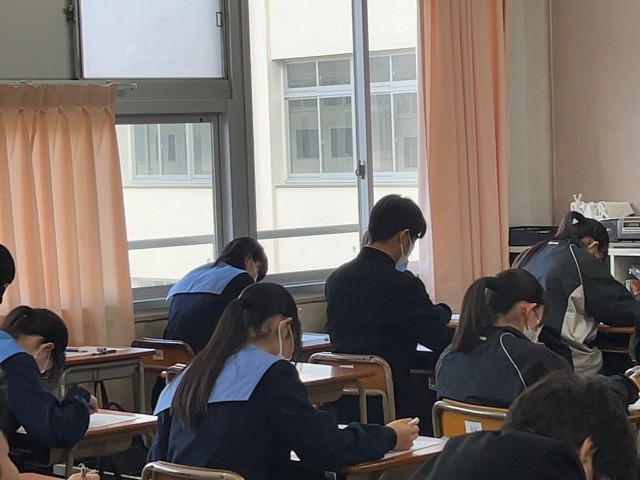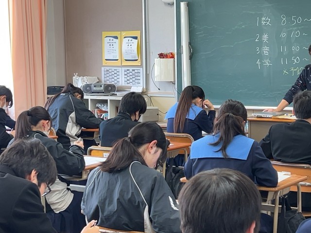 3年生の学年末テスト最終日が行われ、数学・美術・音楽が実施されました。私学入試まであと約2週間となりました。気を緩めず頑張っていきましょう。