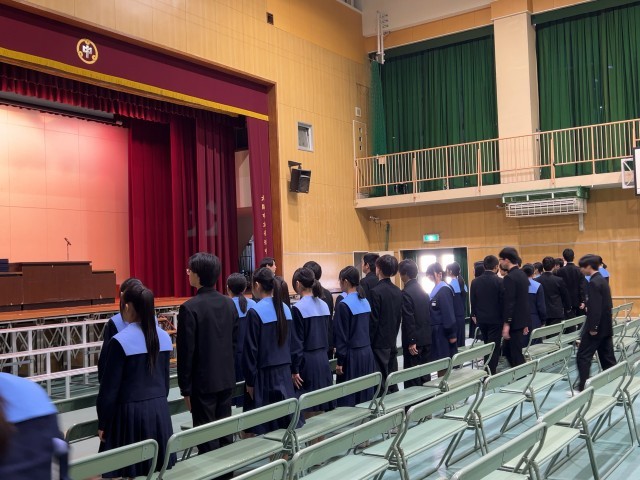 いよいよ明日、第52回卒業証書授与式が行われます。3年間を通じて最後となる取り組みです。みなさん緊張した表情で、真剣に取り組んでいました。